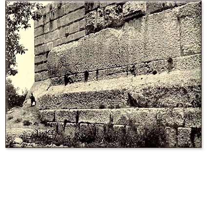 Effectively hidden beneath the massive Roman Temple of Jupiter-Baal is the Baalbek "trilithon," the feature for which the site is most famous today. These are three 900-ton blocks that form part of the raised platform on which the temple was erected. Less well known is that beneath the trilithon lie twenty-four 400-ton blocks, forming an immense "U"-shaped enclosure, nearly encircling but otherwise unrelated to the Roman work above. Conventional wisdom is that this megalithic extravaganza — actually "maxilithic," since they are among the largest stones ever quarried — was part of the Roman project, abandoned unfinished for some unknown reason during construction. Perhaps, but it is clear that more was once planned than actually happened. The most mind-boggling pair of relics at Baalbek remain shaped, but unmoved in the nearby quarry from which the largest stones were taken. They are the two largest building blocks in the world, both apparently awaiting transport to join the trilithon: the 1200-ton "Stone of the South" and an even larger, only recently excavated giant probably weighing nearly 1500 tons, roughly the weight of many World War II destroyers!